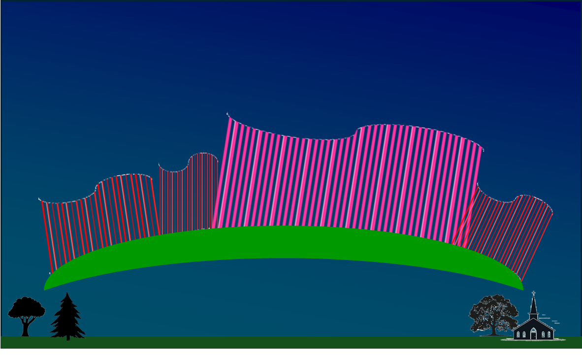 Things become more interesting when the southward pointing magnetic field of the CME is very strong or remains southward for several consecutive hours. This results in a severe or extremely severe geomagnetic storm, with Kp respectively reaching 8 or 9. The stronger the field and the longer-lasting the southward orientation, the stronger the resulting geomagnetic storm will be. Typical examples are the October 2024 (Kp 9-) and the May 2024 (Kp 9o) geomagnetic storm. Now, in this scenario, the magnetotail gets much more compressed, and the magnetic reconnection can occur much closer to Earth at distances of 20 earth radii or less (Nagai et al. 2023) as shown in Figure 1.B. That change in location makes a difference, because the connecting magnetic field lines now guide the released particles towards Earth's mid-latitudes and occasionally even further equatorwards. This means that the aurora, as seen from Belgium, are now getting higher in the sky, with increasing chances that also the low-altitude green aurora become visible, as shown in Figure 2.B. Also, because the magnetic reconnection in the magnetotail is taking place over a much wider area, the auroral oval becomes wider.