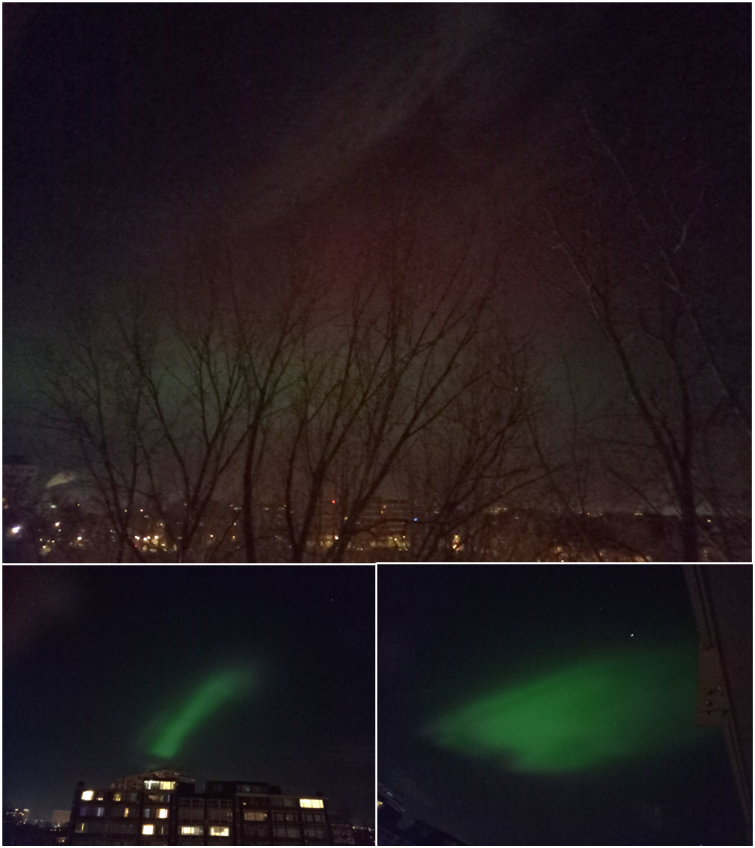 The images underneath show the aurora from last week's geomagnetic storm, as observed from Brussels on 19 January between 21:30 and 22:15 UTC. The top figure shows the typical aurora as seen due north. Compared to the May 2024 storm, the main differences were that the aurora were not as high in the sky this time, and the reddish hues were a bit less pronounced than almost 2 years ago. The two smaller pictures in the bottom row show 2 examples of proton aurora, the lower left in the due east direction and the lower right picture as seen near the zenith (directly overhead). Barely a few pictures could be taken of each blob, that's how fast they appeared then faded away. Many observers commented on the "disco-like" feeling they got while observing these dynamic, pulsating green features often as bright as the full moon. On social media, there are plenty of really good and astonishing images and clips of the phenomenon. Examples are Jonas Piontek (https://www.facebook.com/jonaspiontek/ and https://www.instagram.com/reel/DTyOMMsjPQw/ ), Wil Photography (https://www.facebook.com/wilphotographer ), and Anthony Bongiovanni (https://www.threads.com/anthonybgvn ). Fiona Lee and Kelly Kizer Whitt (https://earthsky.org/space/weird-aurora-blobs-proton-auroras-explained/ ) provided examples of proton aurora observed during the 11-12 November 2025 storm.