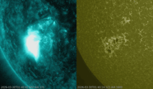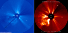NOAA 4405 produced an X-class flare early on 30 March. The associated CME has an earth-directed component.