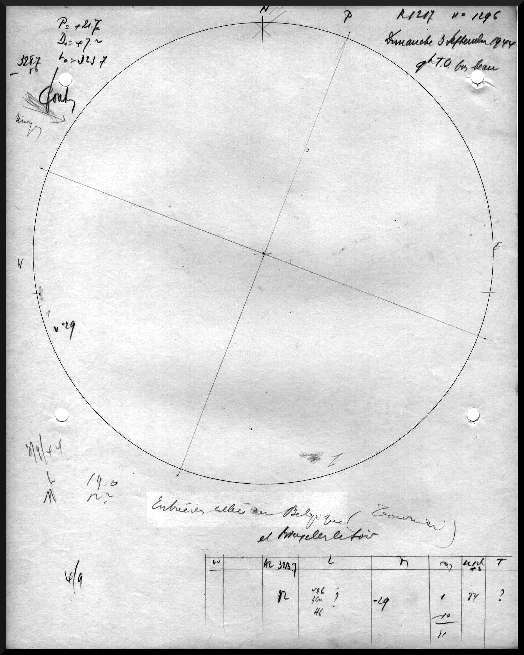 Exceptionally, the observer adds a note that is not related to solar activity but to historical events, such as the liberation of Brussels on September 3, 1944, with the comment “entrée des Alliés en Belgique (Tournai) et à Bruxelles le soir” (“Allied entry into Belgium (Tournai) and Brussels in the evening”), or the Allied victory on May 8, 1945, with the note “capitulation de l’Allemagne, V pour Victory Day” (“German capitulation, V for Victory Day”).
