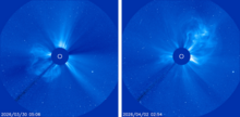 Two earth-directed coronal mass ejections surprised space weather forecasters with their arrival time and geomagnetic impact. The first one passed almost unnoticeable, the second one eventually resulted in a strong geomagnetic storm.