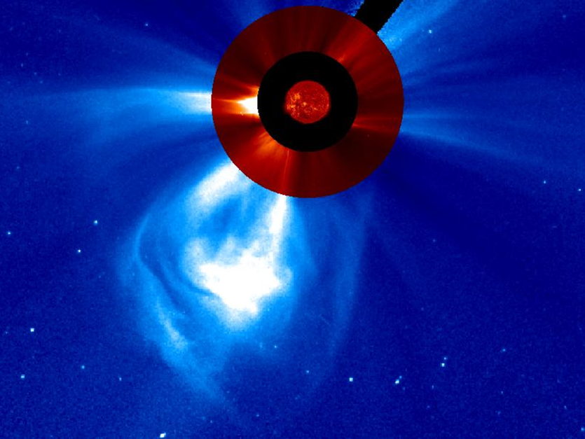 Early June, a long filament rounded the east limb, towering 150.000 km over the solar surface. Because of its length, about 1.5 times the Earth-Moon distance, space weather forecasters knew they had to keep an eye on this feature. Indeed, such long filaments are known for becoming unstable and may eventually erupt. Exactly this scenario unfolded on 4 June when part of the filament slingshot itself into space at an estimated speed of around 500 km/s. A movie of the event can be seen here.