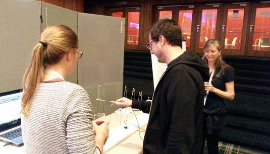 Finally, the attendees could really socialize during the after-hours activities. On Monday, the welcome reception was preceded by an impressive medal award ceremony. On Tuesday, there was a wonderful music evening in the Casino Lounge, where some participants surprised the audience with their remarkable musical and vocal skills. On Wednesday, the Fair was followed by the traditional beer-tasting, where most participants tasted more beers than there were sunspot groups present on the solar disk. That was not so difficult, with a nearly spotless Sun! On Thursday, the conference dinner took place in the Hippodrome (buildings of the Wellington Racetrack). Most guests arrived with soaking wet clothes (courtesy of a good Belgian shower), but were able to warm themselves with good food and drawing some nice cartoons. Also, the 6 winners of last year's bet on the number of X-class flares got a sweet award.