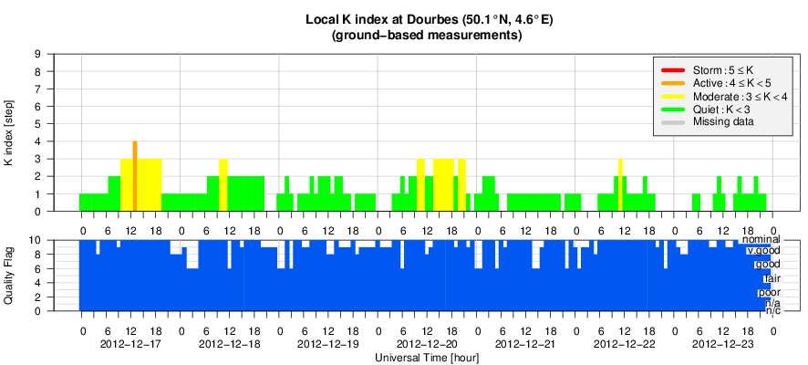 Published by the STCE - this issue : 29 Dec 2012. The Solar-Terrestrial Centre of Excellence (STCE) is a collaborative network of the Belgian Institute for Space Aeronomy, the Royal Observatory of Belgium and the Royal Meteorological Institute of Belgium. |