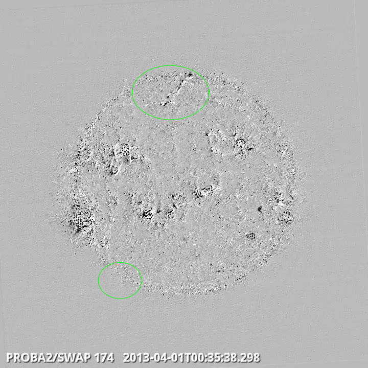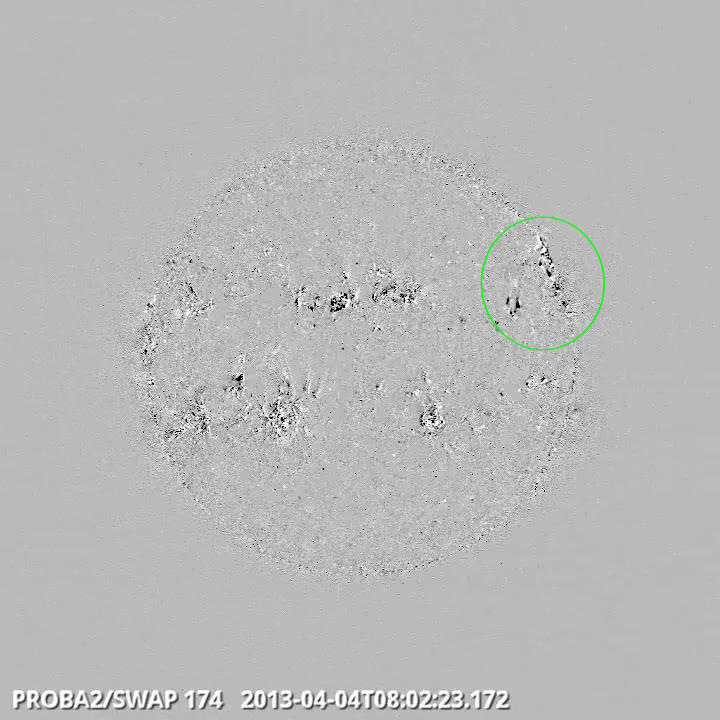 A weekly overview movie can be found here: http://proba2.oma.be/swap/data/mpg/movies/WeeklyReportMovies/WR158/2013_04_01_00_00_07_2013_04_07_22_54_19_SWAP_174__AIA_304-hq.mp4 (SWAP174/AIA304 combination; HelioViewer.org).