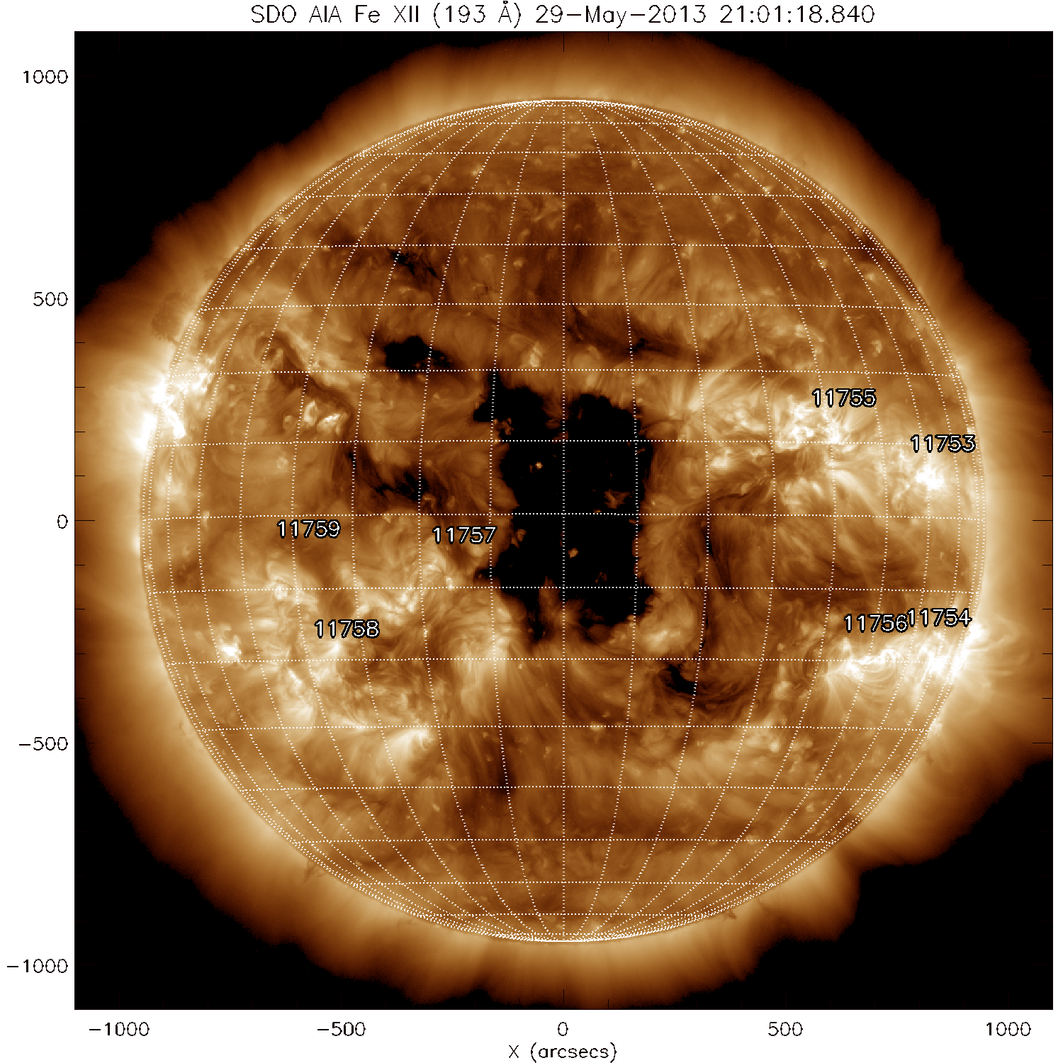 Between 01:00 and 12:00 UT, a beautiful cavity eruption occurred, its effects visible on the solar North Pole. A movie of this event can be found here: http://proba2.oma.be/swap/data/mpg/movies/WeeklyReportMovies/WR166-May27toJune03/Events/2013_05_31_01_15_33_2013_05_31_12_42_24_SWAP_174-hq.mp4.