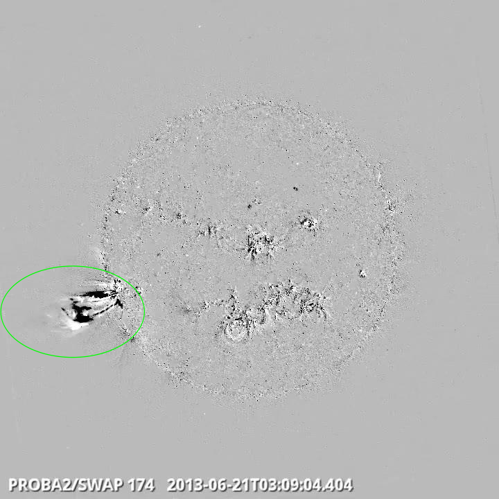http://proba2.oma.be/swap/data/mpg/movies/WeeklyReportMovies/WR169%20-%20June17-23_2013/Events/2013_06_21_01_31_34_2013_06_21_04_27_04_SWAP_174-hq.mp4 (SWAP colored movie; HelioViewer.org),