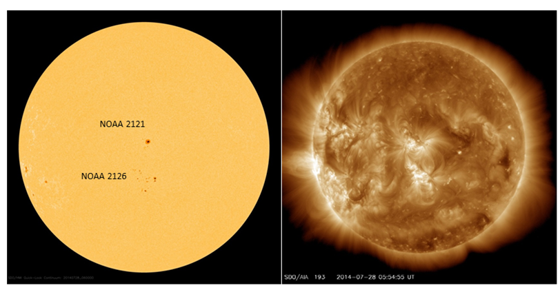 Remember NOAA 2126? This relatively small sunspot group was visible from about 23 July till 3 August. It was flanked to the north and south by resp. NOAA 2129 and NOAA 2123, which were smaller and simpler sunspot groups. During its transit, NOAA 2126 produced only a few small C-class flares.