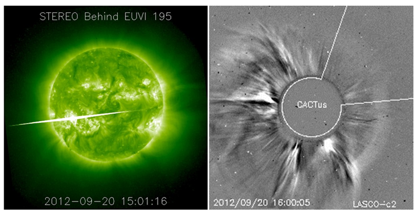 Credits - Data and imagery were taken from SDO (http://sdo.gsfc.nasa.gov/data/aiahmi/browse/), CACTUS (http://www.sidc.oma.be/cactus/out/latestCMEs.html), STEREO (http://stereo-ssc.nascom.nasa.gov/cgi-bin/images) and SOHO (http://sohowww.nascom.nasa.gov/home.html).