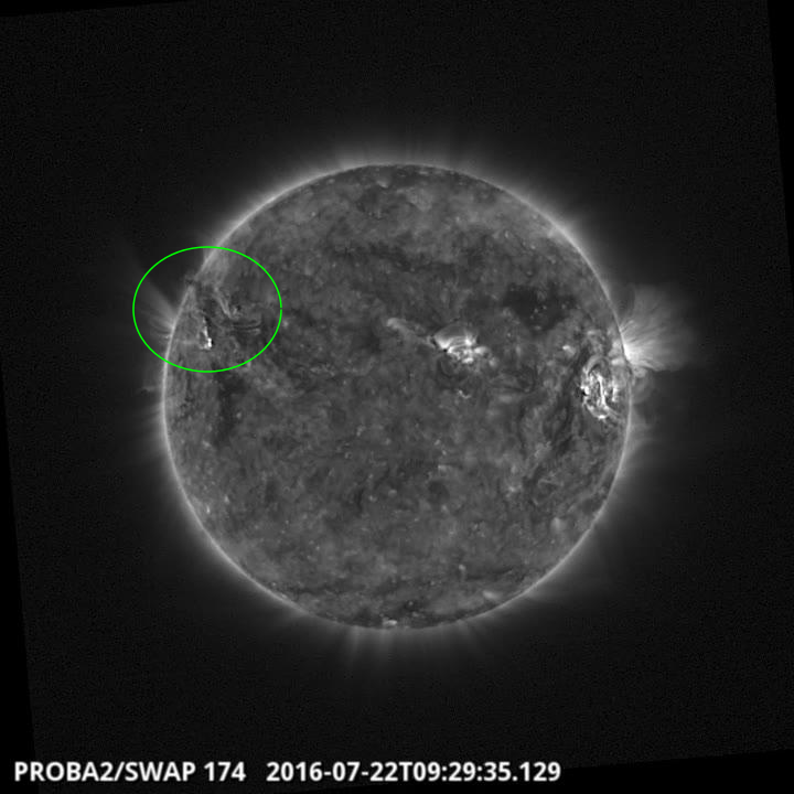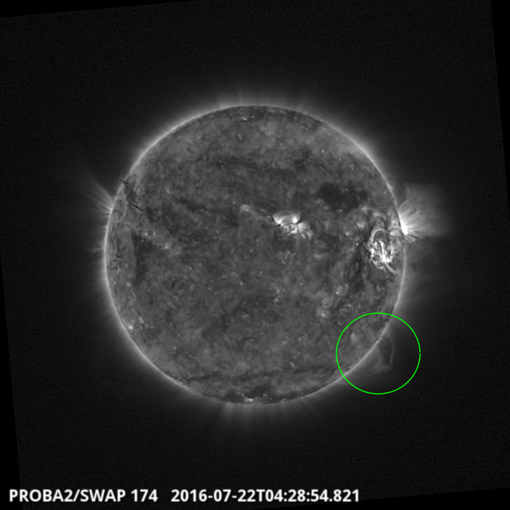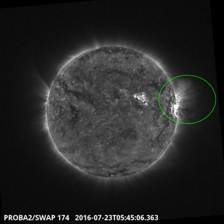 An eruption was observed by SWAP on the east limb of the Sun on 2016 Jul 23 at 05:45 UT