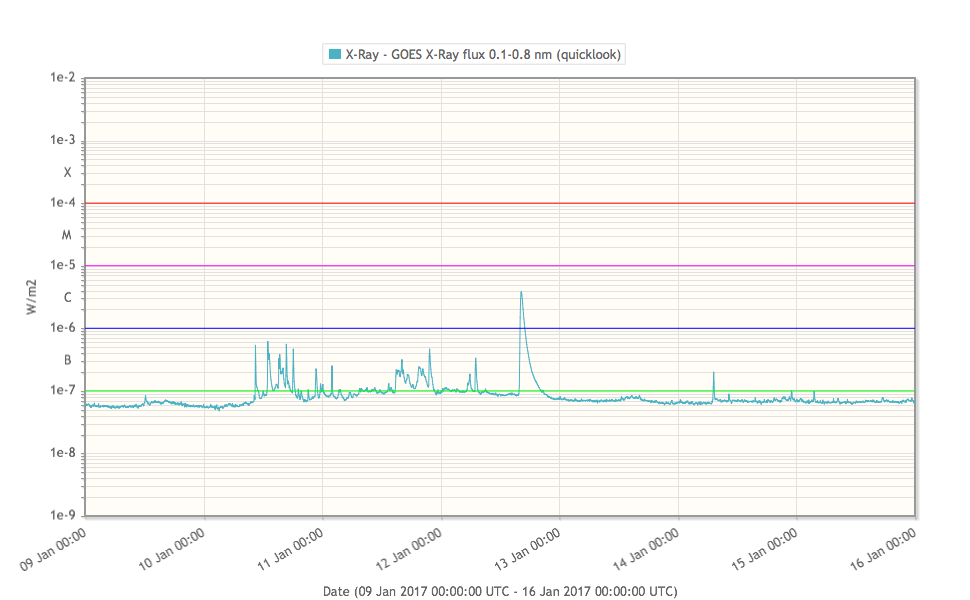 This created geomagnetic conditions leading to K = 4. The rest of the week was quiet with K not going above 2.