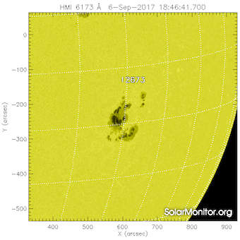 For comparison, this is how Catania sunspot group 57 (NOAA AR 2682) looked like a Catania sunspot group 46 (NOAA AR 2673) in SDO/HMI on September 6.