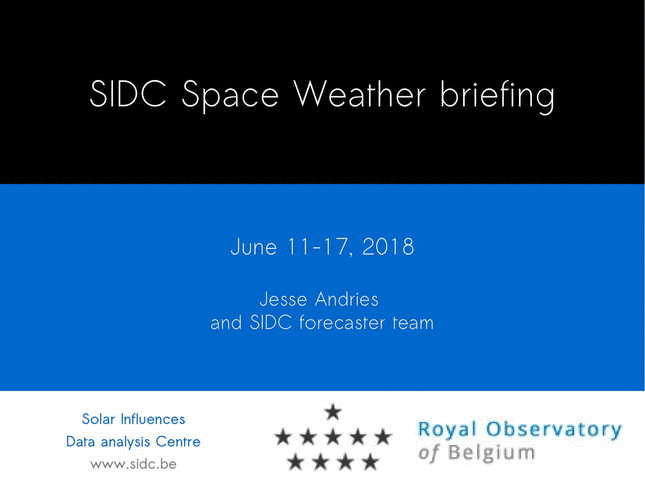 The Space Weather Briefing presented by the forecaster on duty from June 11 to 17. It reflects in images and graphs what is written in the Solar and Geomagnetic Activity report.