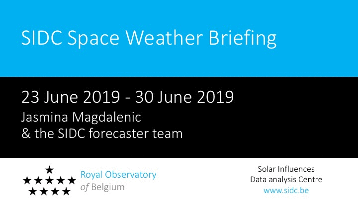 The Space Weather Briefing presented by the forecaster on duty from Jun 24 to 30. It reflects in images and graphs what is written in the Solar and Geomagnetic Activity report.