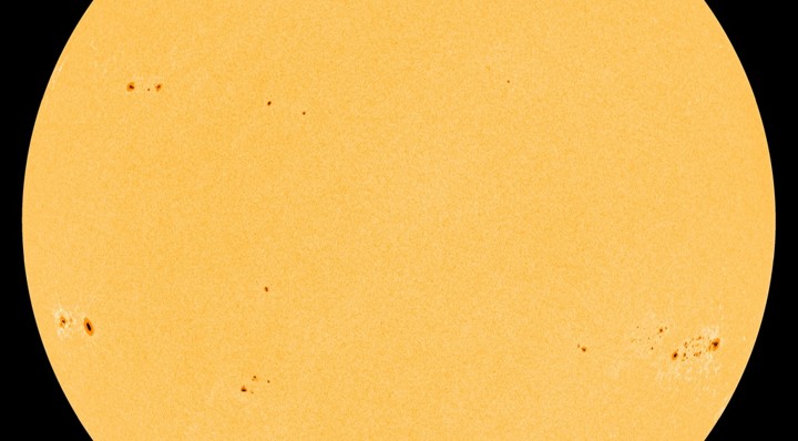 After a slow start with even a few spotless days on 9-11 December, sunspot activity shifted into a higher gear from mid-December onwards. A flurry of sunspot groups emerged, with the daily number of sunspot regions around 9 (6-11) for nearly 2 weeks. The daily estimated international sunspot number (EISN ; SILSO https://wwwbis.sidc.be/silso/eisnplot ) reached 149 and 145 on respectively 22 and 23 December. Though these are not the final values yet, they are virtually certain to be the highest values so far this solar cycle, and the highest recorded since September 2015. The SDO/HMI (http://sdo.gsfc.nasa.gov/data/aiahmi/ ) imagery underneath shows a still of the visible solar disk on 23 December at 11:00UT.