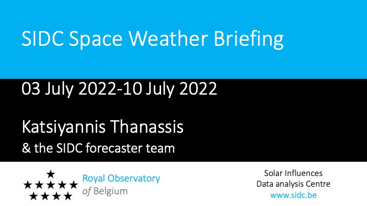 The Space Weather Briefing presented by the SIDC (https://www.sidc.be) forecaster on duty from July 3 to 10.
