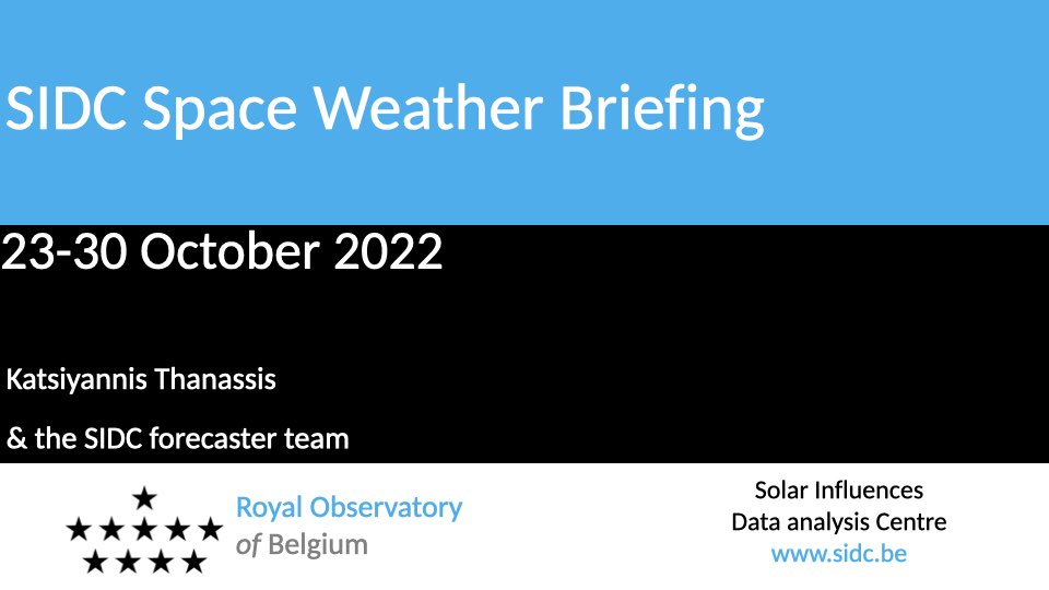 The Space Weather Briefing presented by the forecaster on duty from Oct 23 to 30 2022. It reflects in images and graphs what is written in the Solar and Geomagnetic Activity report: https://www.stce.be/briefings/20221031_SWbriefing.pdf