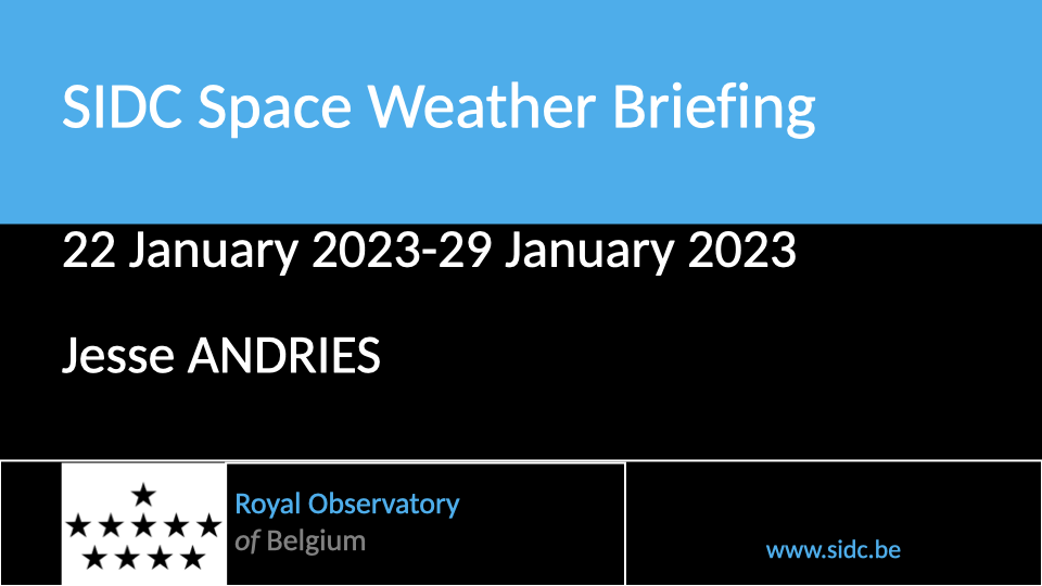 The Space Weather Briefing presented by the forecaster on duty from January 23 to 29. It reflects in images and graphs what is written in the Solar and Geomagnetic Activity report: https://www.stce.be/briefings/20230130_SWbriefing.pdf