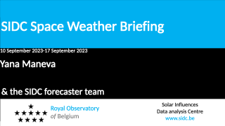 The Space Weather Briefing presented by the forecaster on duty from September 10 to 17. It reflects in images and graphs what is written in the Solar and Geomagnetic Activity report: https://www.stce.be/briefings/20230918_SWbriefing.pdf