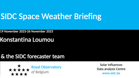The Space Weather Briefing presented by the forecaster on duty from November 20 to 26. It reflects in images and graphs what is written in the space weather report: https://www.stce.be/briefings/20231127_SWbriefing.pdf