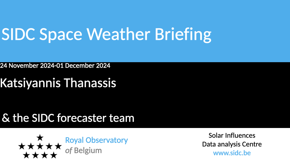 The forecaster on duty presented the SIDC briefing that gives an overview of space weather from Nov 24 to Dec 1 .