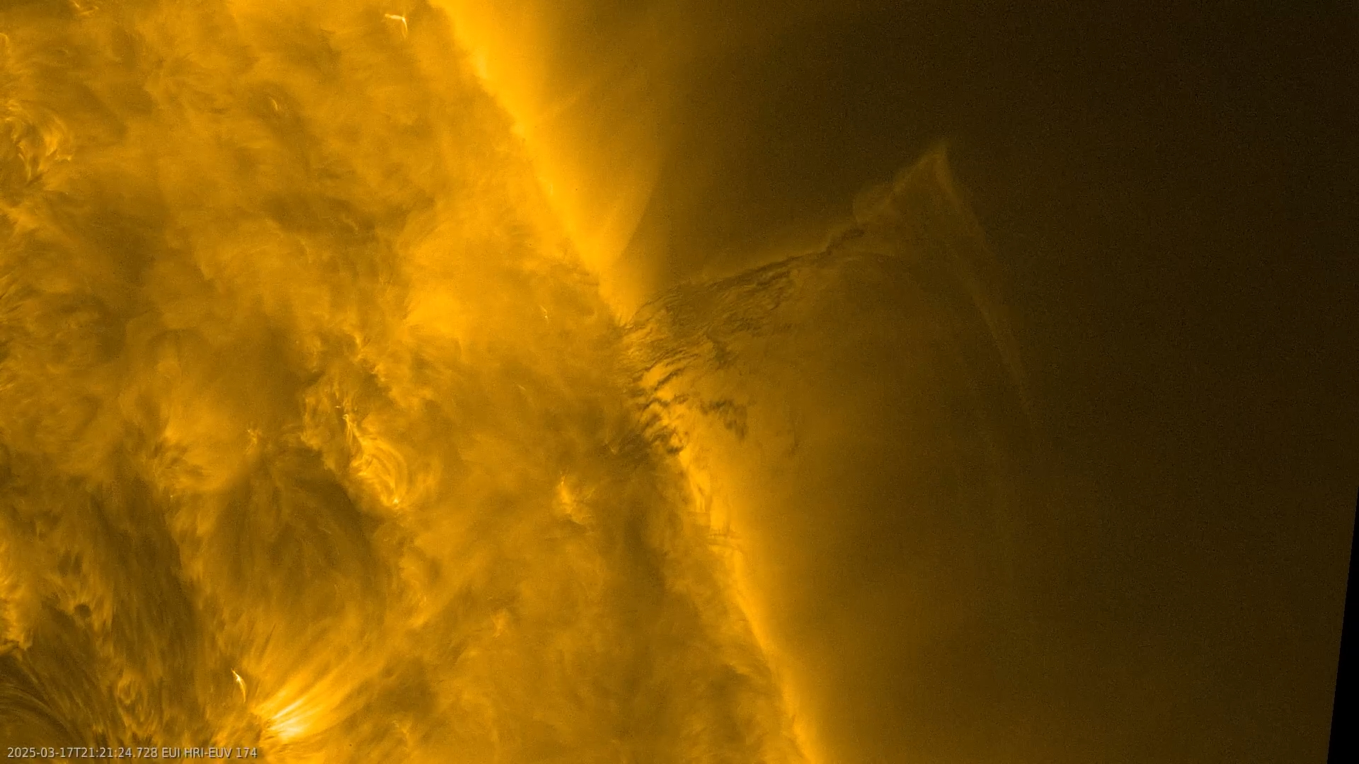 Solar Orbiter recorded this video with its Extreme Ultraviolet Imager (EUI) instrument on 17 March 2025. At the time, the spacecraft was around 63 million km from the Sun, similar to planet Mercury.