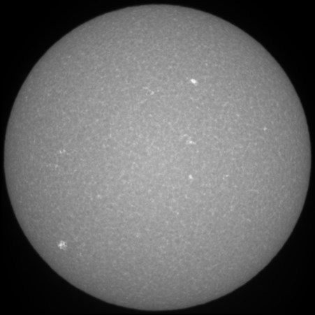 Also the solar telescopes of the Uccle Solar Equatorial Table (USET - http://www.sidc.be/uset/ ) recorded the groups. Underneath an image taken on 24 December in the CaIIK line (a line in the blue end of the solar spectrum). The appearance of these groups halt a period of spotless days that started on 14 November (preliminary SILSO data). It is the longest stretch of spotless days since 1996 (see last week's STCE Newsitem at http://www.stce.be/news/466/welcome.html ).