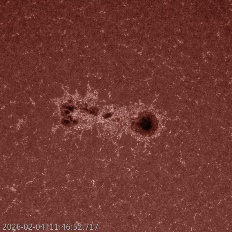UPDATE 4 February 2026 at 14:45UTC - While waiting for the arrival of the magnetic cloud (see update underneath), SIDC Sunspot Group 784 (NOAA Active Region 4366) thought it a good time to produce another eXtreme solar flare. The X4.2 flare reached its maximum intensity at 12:13 UTC. NOAA 4366 has decreased considerably in size over the last 24 hours, but it has retained its two complex magnetic structures in the middle and trailing portion ("delta's"), allowing it to continue the production of strong solar flares. The clip underneath shows the flare and the sunspot group in the ultraviolet continuum, this is at temperatures of around 5000 degrees (SDO/AIA 1700) just above the solar "surface" (photosphere). The source of the flare is clearly in the trailing portion of NOAA 4366, right where the second delta structure is located. Standing-by coronagraphic images for hints of an associated magnetic cloud ("coronal mass ejection", CME).
