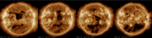 A giant sunspot region has rounded the southeast solar limb and has been the source of several M-class flares. The X-class event early on 1 December was produced by a smaller region near the northeast limb. Further strong flares are expected in the coming days.